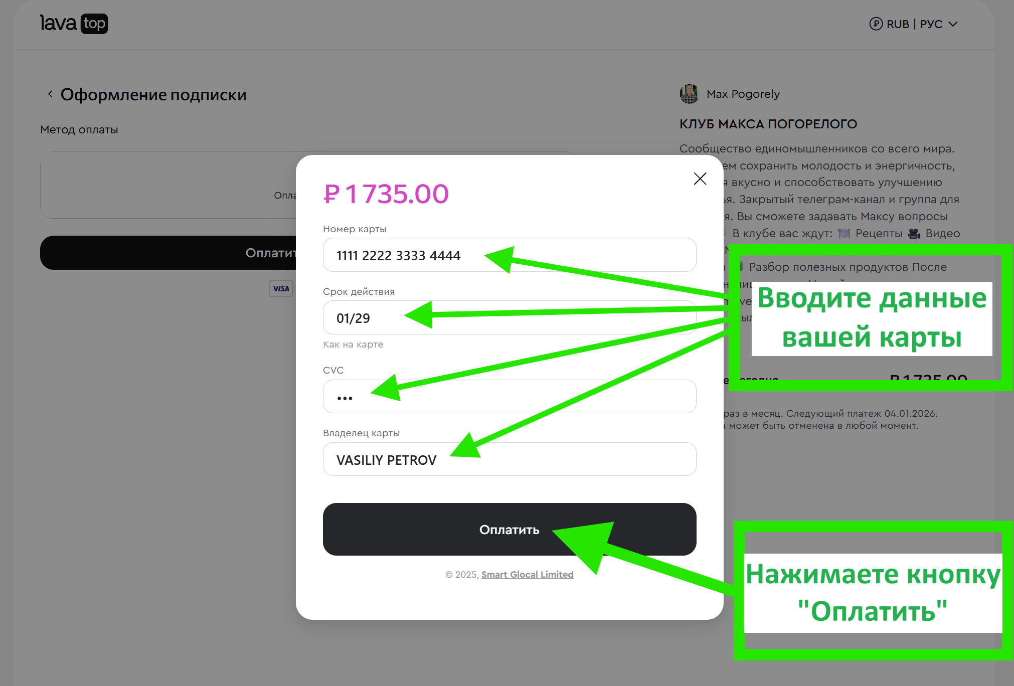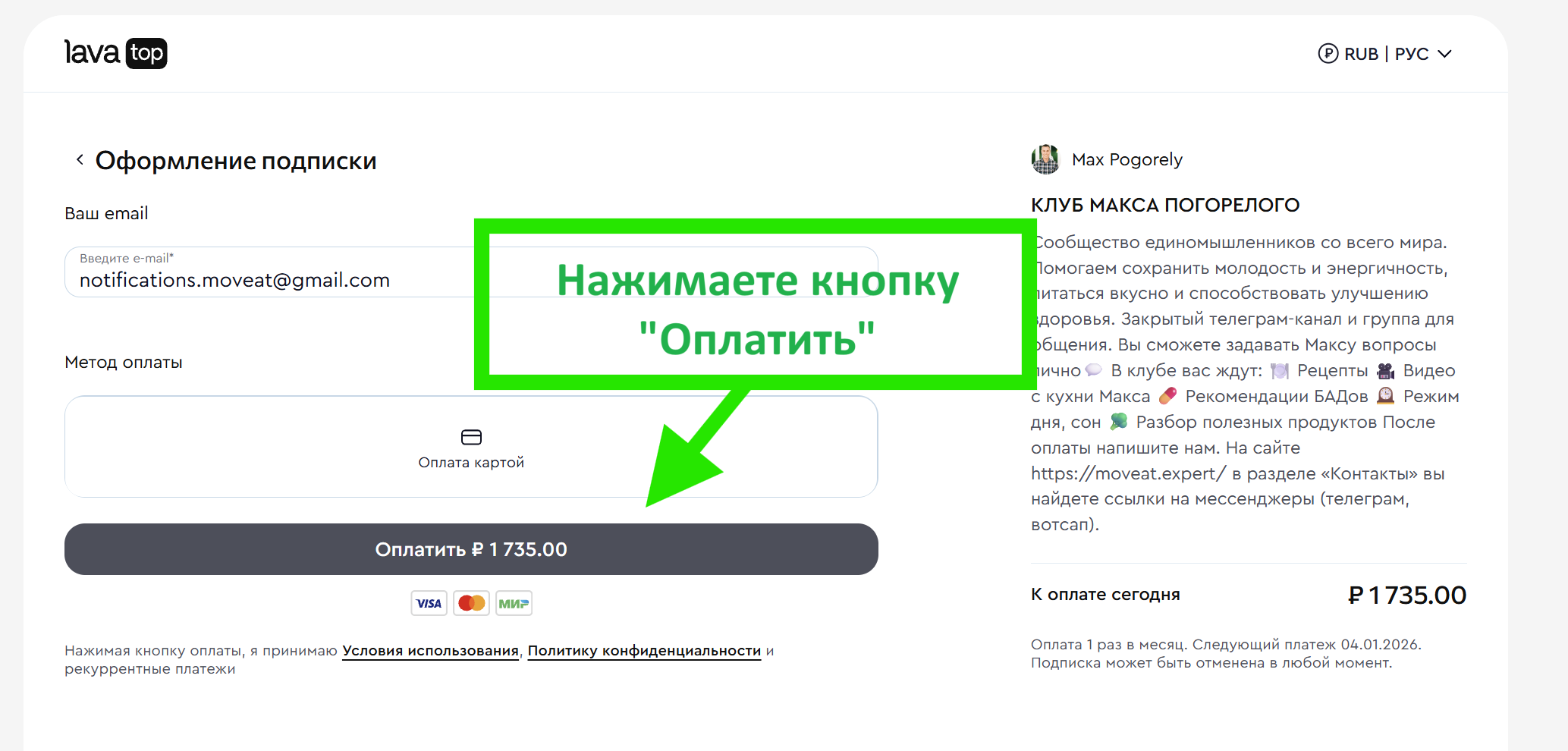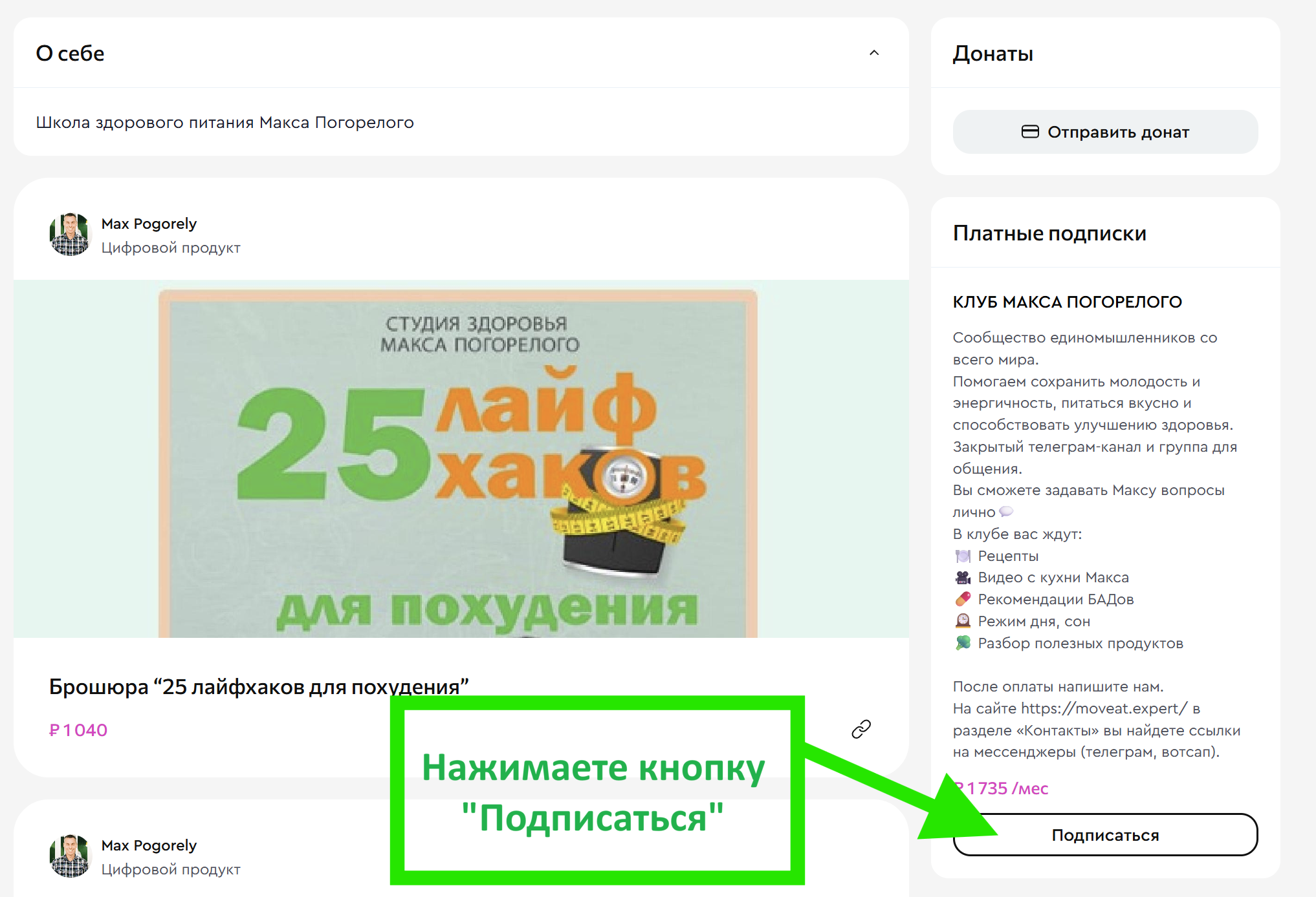 Перейдите по ссылке на страницу Lava.top Макса Погорелого