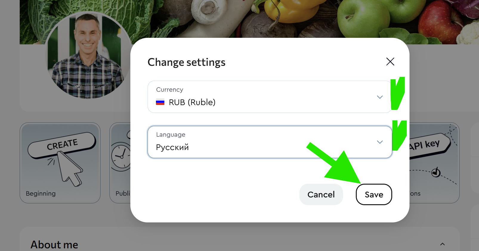 В открывшемся окне выбираете в настройках рубли и русский язык.